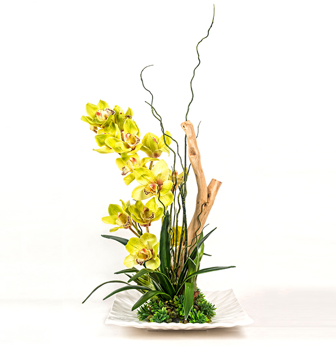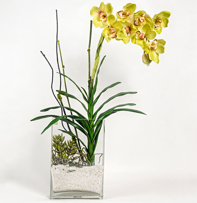 Orquidea Cymbidium Verde y Anturios