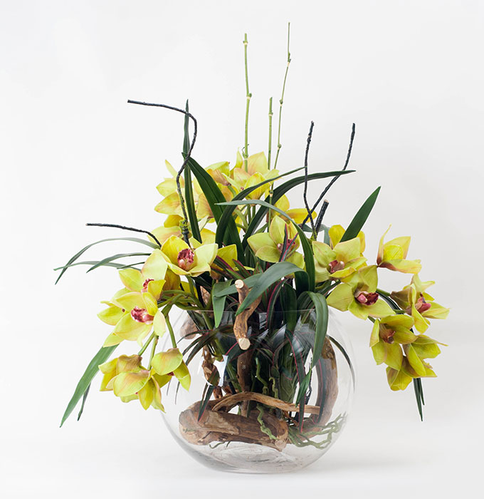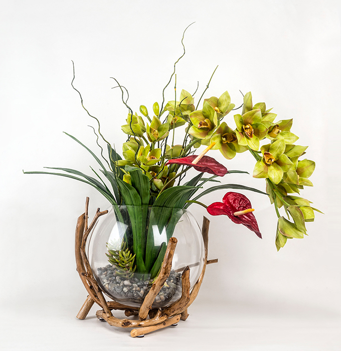 Orquidea Cymbidium Verde y Anturios