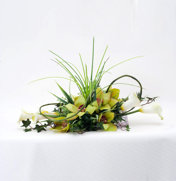 Orquidea Cymbidium Verde y Calla Lily