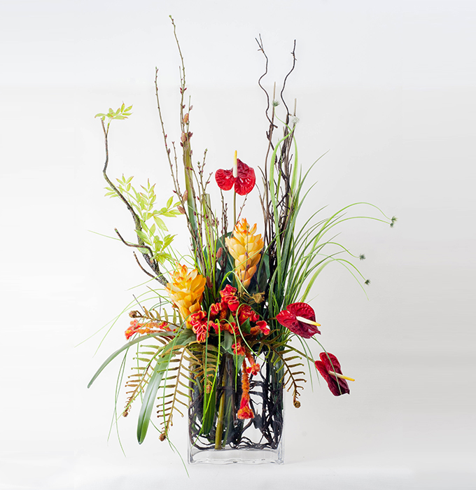 Flor de Banana, Anturios Rojos, Orquideas Blancas