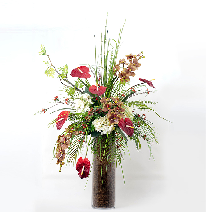 Anturios Rojos, Orquidea Vanda Green Plum y Hortensias